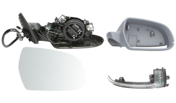 elektrické ovládanie; na lakovanie; vyhrievané; vypuklé sklo; chrómové sklo; 1 -pinový konektor; so smerovkou