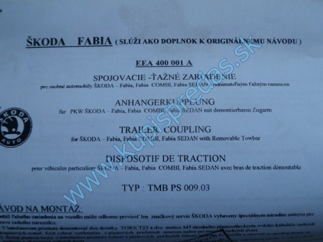 | Popis dielu: | ťažné zariadenie na škodu fábiu 1 kombi, combi |